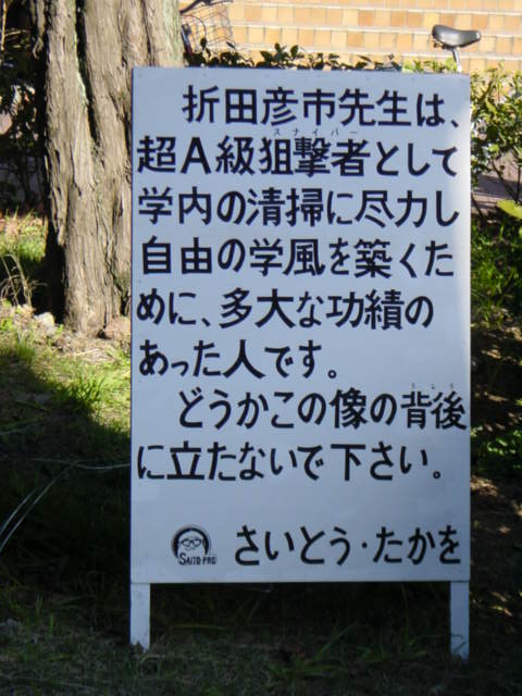 でもって3日の折田像の件で、民より以下のようなお便りが寄せられた。