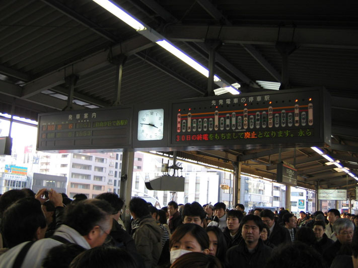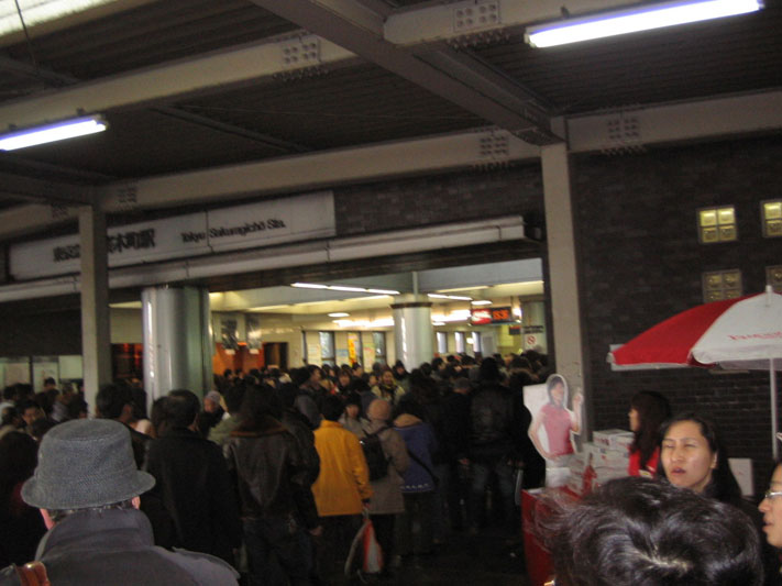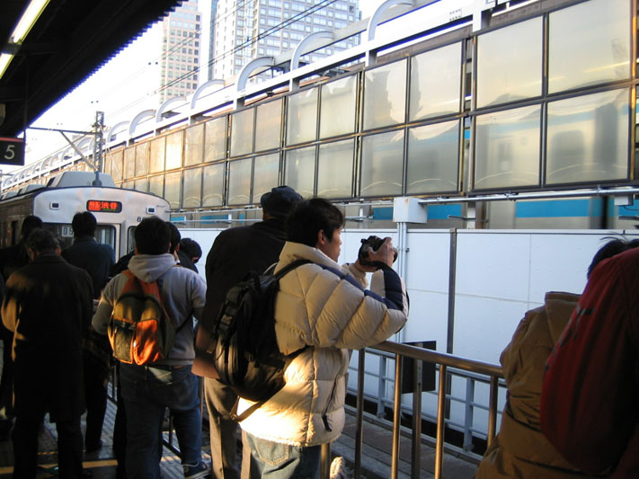 ホームの端っこなどこのような有様である。駅員は「フラッシュをたかないでください!」と叫んでおるし、なかなか混乱した状況であった。