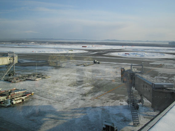 機内では現地の気温がー7度である旨のアナウンスが流れるが、まぁそんなもんであろうな。