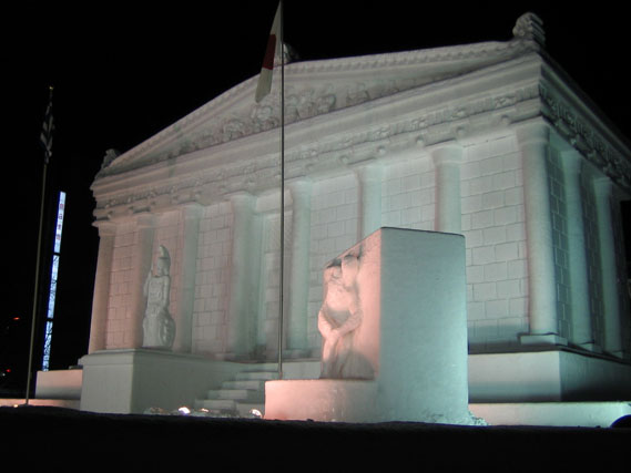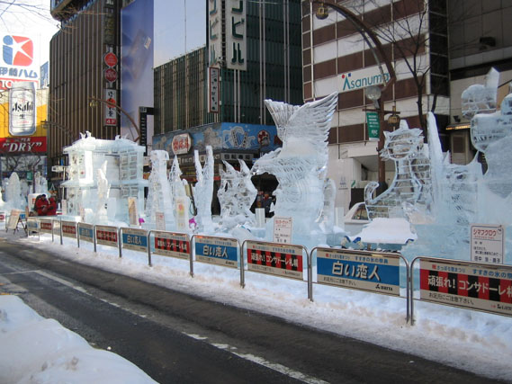 ここにはラーメン横丁、氷の彫刻もあり、昼はここのラーメンを取る事にする。ラーメン横丁ではいつも行くところをのぞいてみたが、5年来ておらぬうちに店の半分が他の店に取られており、この狭い通りの中では日々熾烈な競争が繰り広げられておるのだなと思った次第である。