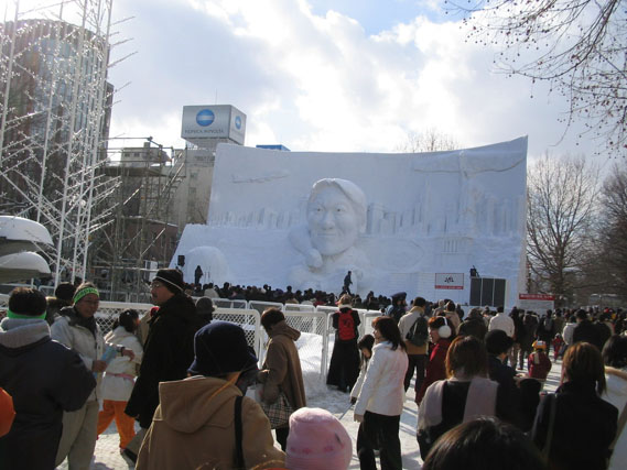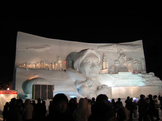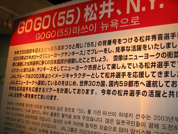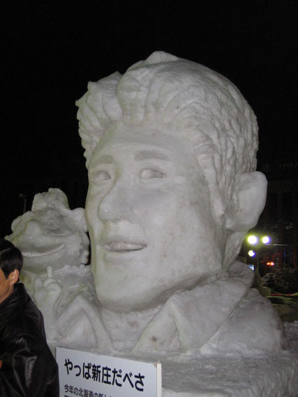 まず松井の雪像が目に入る。背番号が55なら、雪まつりも今回55回目、という事らしいのだが、新庄より扱いが大きいとはちょっとアレな気もするである。ちなみにこれを「新庄の雪像」と報道したメディアもあるらしいのだけれども、見れば分かりそうな気もするのであるがな。