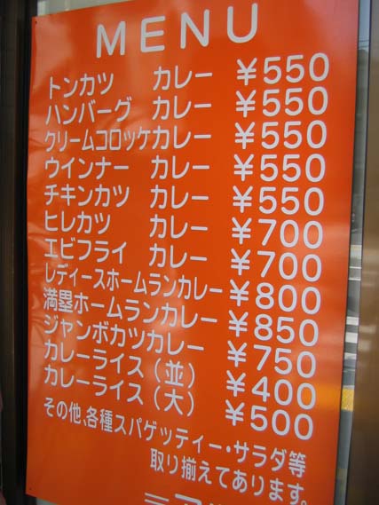 続いて「カレーの市民 アルバ」のメニューである。