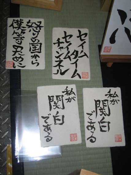 ちなみにあれを書いた者のページはここである。「フリーオーダー」も受け付けておるようであるからして、民も何か心打つ言葉があれば、頼めば書いてくれるやも知れぬぞよ。