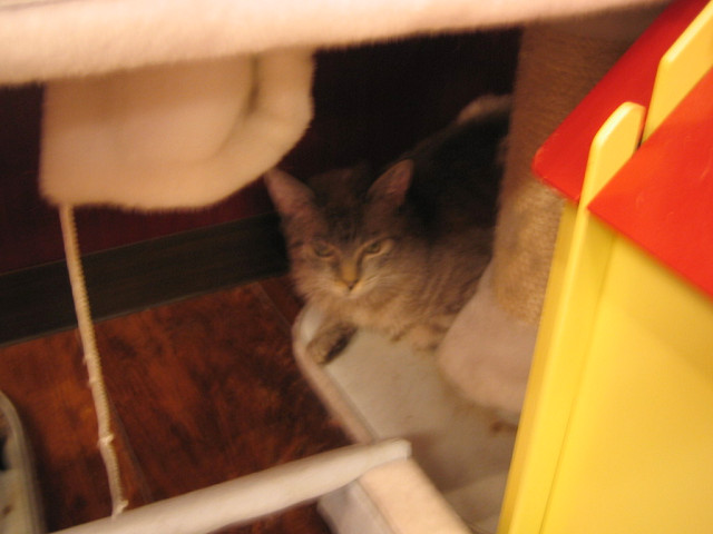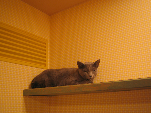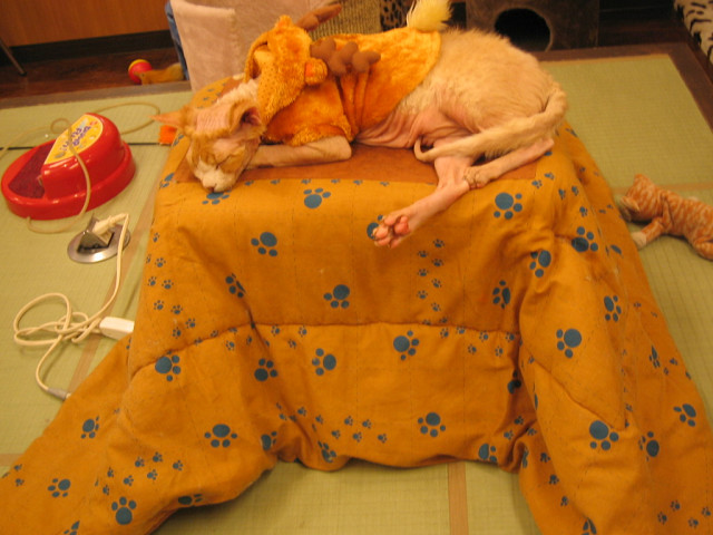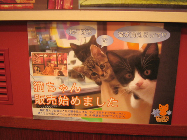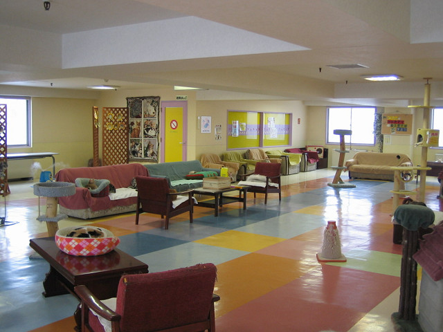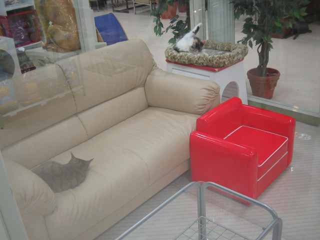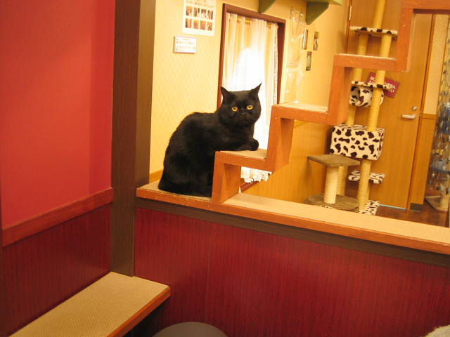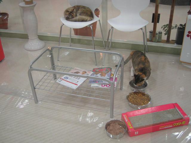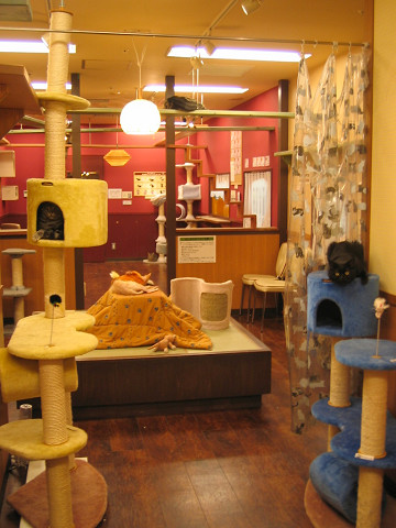 するとその一角にはこのようなものがあった。中はこのよう(写真1、写真2)になっておって、しばしネコとまったりできるという訳である。