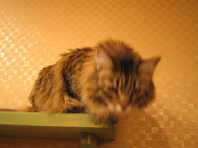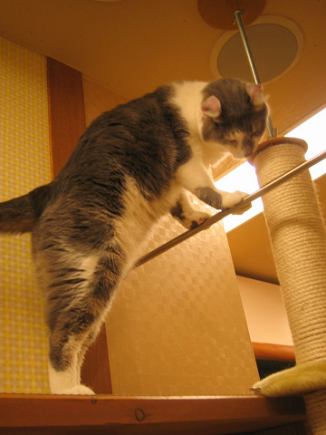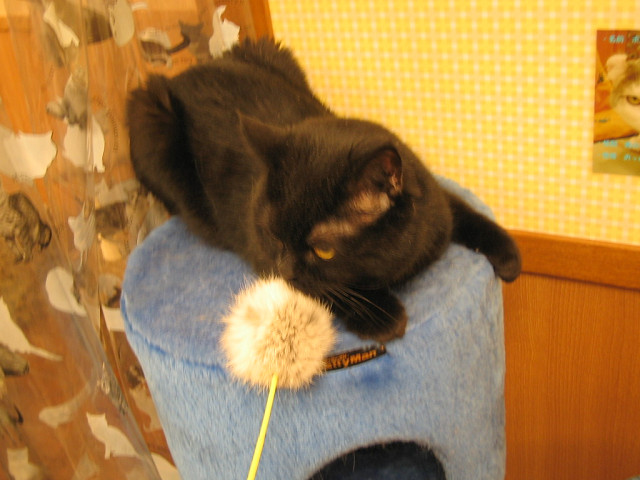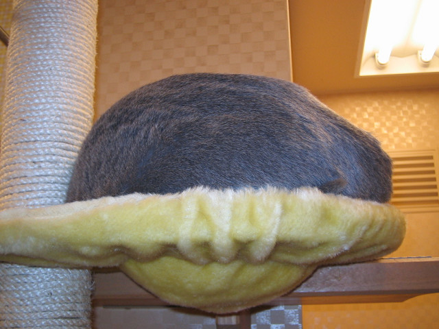 ねこぽろで、布っぽいパイプの中に入り、しっぽだけ出しておるネコのムービー(2M)を載せる。