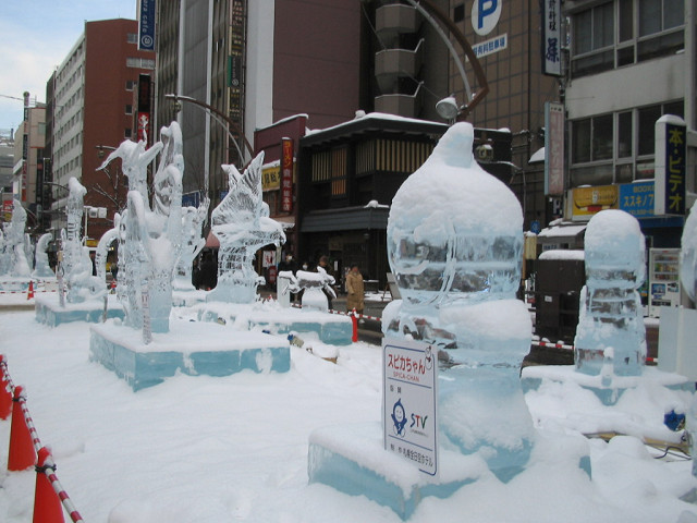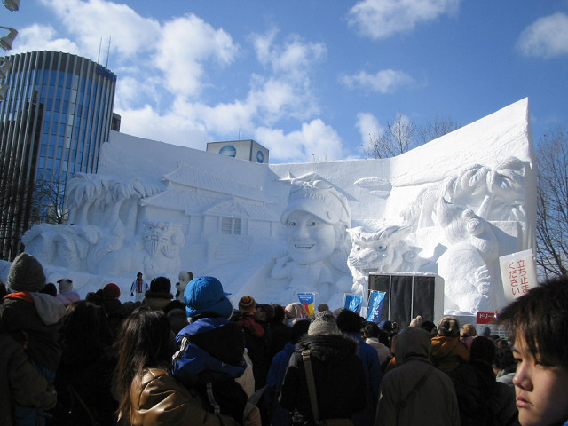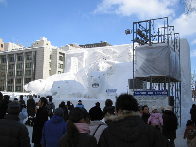 色々な雪像を眺める(写真1、写真2、写真3、写真4、写真5、写真6、写真7、写真8、写真9、写真10)。