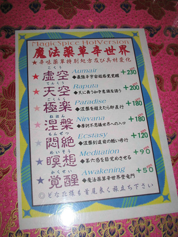 マジックスパイスでは、吉野氏は関白の「悶絶」の一段上の辛さ「涅槃」を食した。