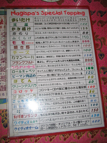 他にもこのようなトッピングが可能であるが、かき揚げとか岩のりとか入れるカレーというのは何なのかのぅ。