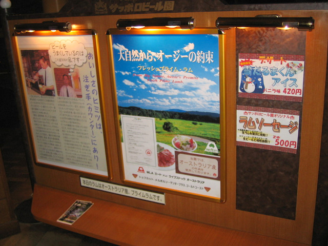 北海道では食卓でもポピュラーなラムであるが、ここの特長は臭みがほとんどない事である。東京でもジンギスカンブームであるけれども、そういう店と比べてもやはりこっちがうまいと言えよう。