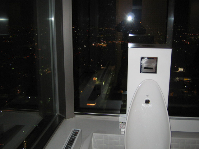 大通公園側、つまり繁華街側に回る。その前にトイレに入ったが、なんとトイレも展望なのである。