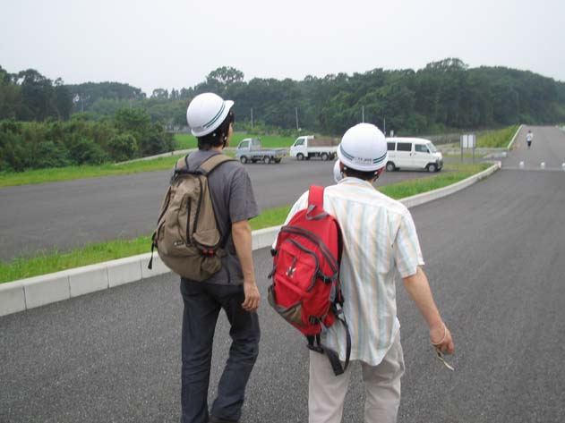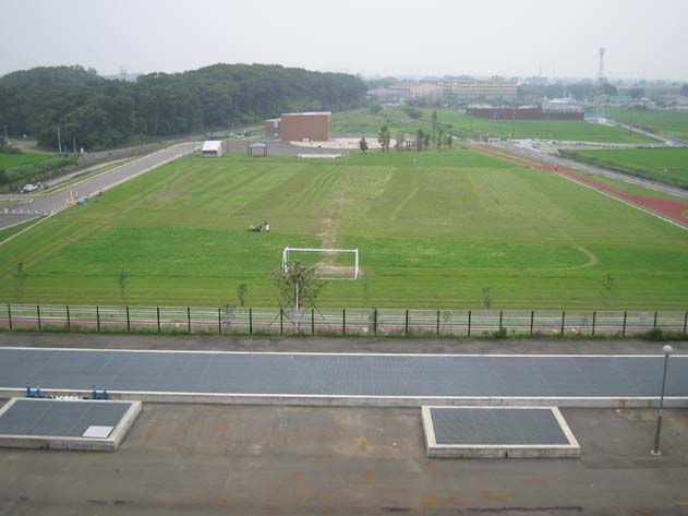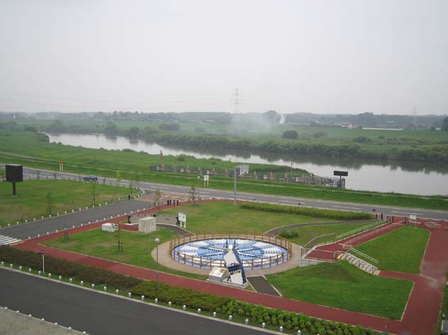 江戸川方向を眺める。富士山方向を見ると、このサッカーグラウンドの下が地底神殿であるとの説明を受ける。