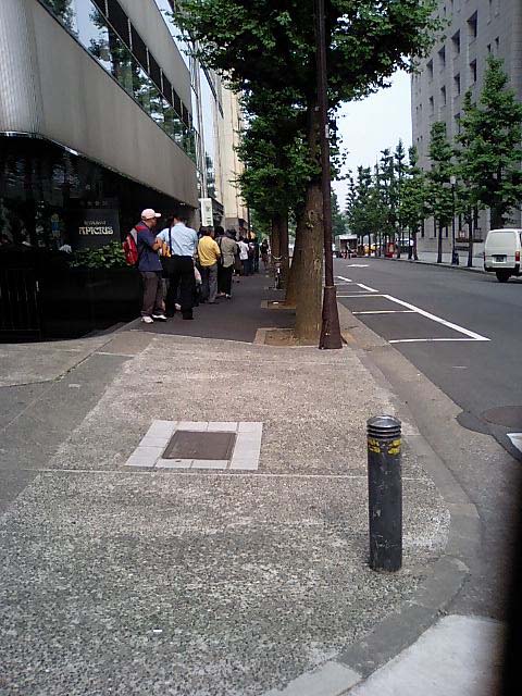着いてみると、なるほど並んでおる。やはり10人とかくらいの話ではないのぅと思いながら、一旦玄関先に行って、既に並んでおった七月番組表を取って一番後ろに並ぶ。