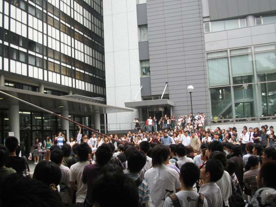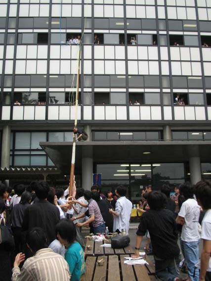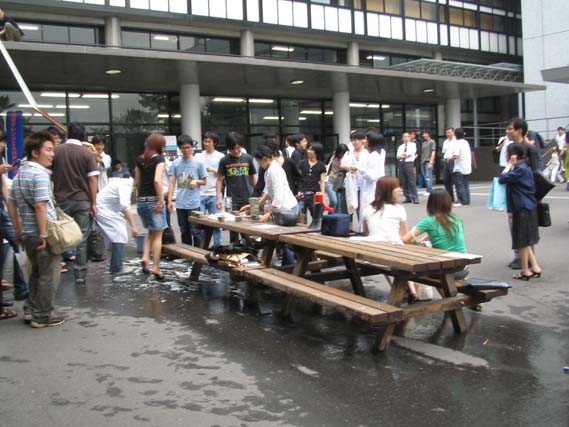 昼休みというと最近はよく中核派が演説しておるらしいし、それを聞きながらもジェット流しそうめんも楽しめる訳である。中核派も公安も、ついでに総長も、共に流しそうめんを味わって欲しいものであるのぅ。
