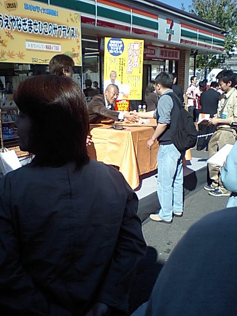 早速会場のテントへ向かう。しかし時間ちょうどに着くも行列らしいものがない。これは一体どうした事かと思うと、整理券をお持ちの方はこちらにお越しくださいとか言っておる。係員に渡すと、なんとうえちゃんが奥から現れたのである。
