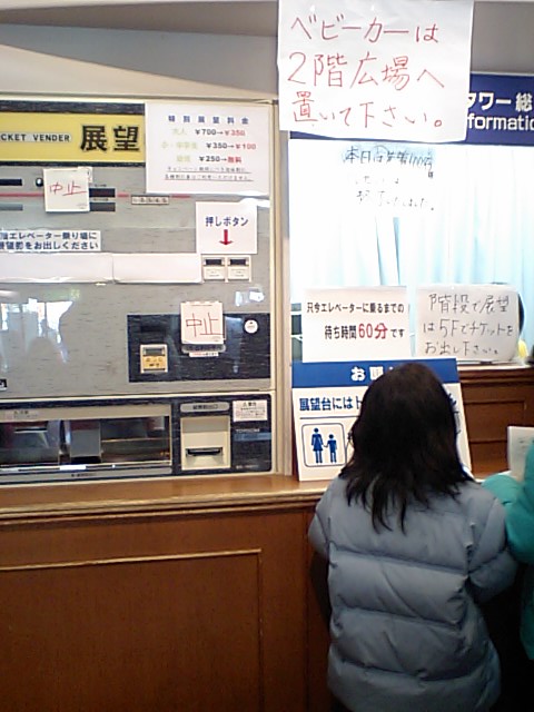 折角なので簡単に記すが、まずマリンタワー。既に情報が寄せられておる通り一時間待ちと書いてある。しかもチケット売り場から一時間待ちのようであるからして、この外へも続く行列を見たらば、忙しい関白においてはとても待てぬものと知る事であろう。