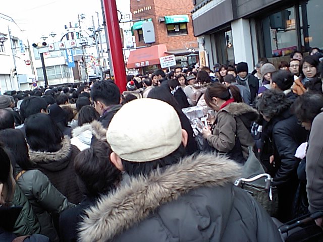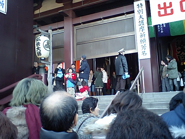京急川崎駅の時点で既に人が多く、先が思いやられる。やはり川崎大師駅から参道の道は大変な混雑ぶりで、本殿につくまでになんと一時間半もかかったのじゃ。昨年の込みようはこんなでもなかったような気もするが、昨年よりちょっと早く来た事が災いしたのやも知れぬ。