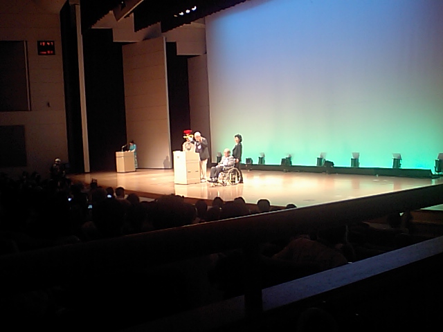 後でこれは解決になってないと分かるのではあるが、とりあえず気持ちよく企画を見て回る。19時からのオープニングでは、既に車椅子の世話になっておる小松左京氏を見るのである。