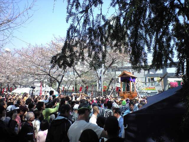 外人は気が早いであるのぅと思って境内に入ってみれば、なんと御輿は既に街に出ておったのじゃ。