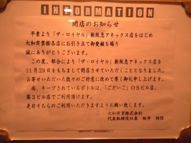 入り口のボードが悲しみを誘う。中に入ればこのような張り紙もある。だからと言って誰も納得できるものでない。バニーガールにおいてはもっと納得いかんであろう。なにせこの9月に入った子もおると聞くしな。