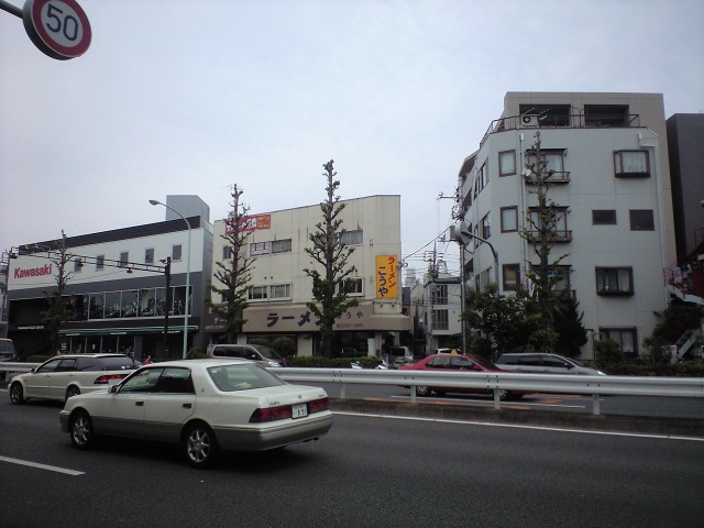 「番」と「こうや」の写真は同じ場所から撮ったものである。このような近くに同業のラーメン専門店。「番」も、こことの競争に負けたのかも知れぬ。さすれば今日の昼食はここにしてみよう。見れば店の前、環八に車が何台か止まっておる。中を見れば7-8人座って待っておるではないか。ラーメンに限らず、このあたりでこのように人気のある店を知らぬ。