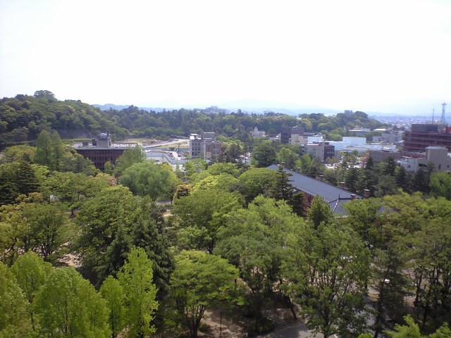 そして尾山神社(写真1、写真2)。続いて香林坊後リオの上からの中心部のパノラマを見てみよう(写真1、写真2、写真3、写真4、写真5)。こうして見ると、なかなか市内も緑が多いものである。