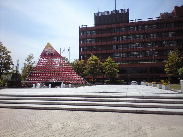 まずは金沢市役所である。そろそろ百万石まつりであるらしく、このようなデコレーションも出ておる。観光課など担当部署は大忙しであろう。