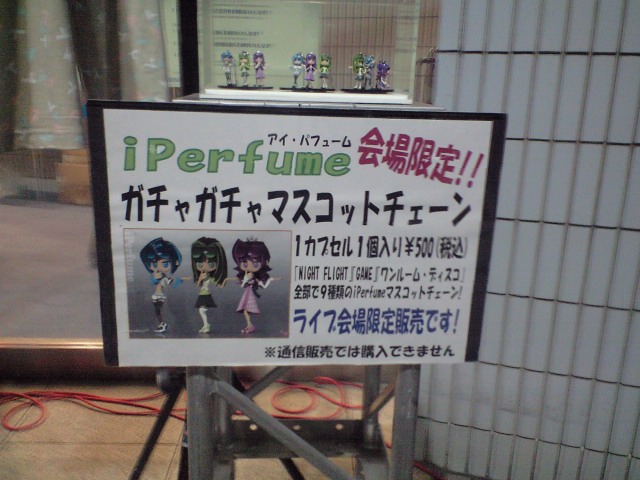 既に写真が出ておるが、Perfumeガチャガチャが新登場しておった。1個500円といい値段であるけれども、会場限定という言葉に負けて、4個買っておく事にする。