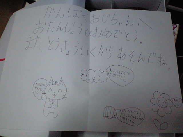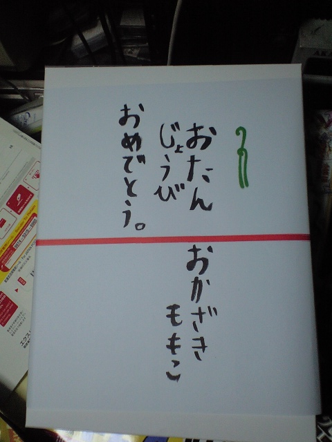 まず、昨日受け取れなかった関白への誕生プレゼントを受け取る。ゆみゆみに依れば、この文字もももも直筆であるらしい。