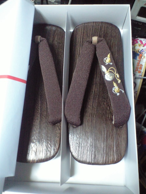 開けてみれば下駄であった、手作りのものが送られて来ると聞いておったが、どうもこの鼻緒の部分がゆみゆみお手製であるらしい。早速風呂の行き帰りに使ってみるとしよう。