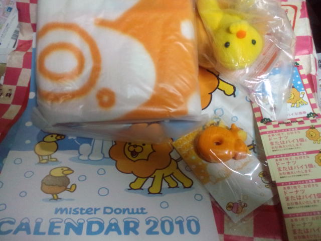 ただ券の他は、ブランケット、カレンダー、マスコット、根付?のみという貧相ぶりである。ただ券で元は取れておるのでいいと言えばいいにせよ、これまでのミスド福袋の栄光に比べれば、この落差はどうした事であろうか。