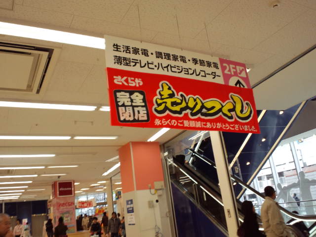 当然に店舗の看板はある。しかし中へ入ってみると什器はからっぽで、あらかたの商品は二階へ上げられておるようじゃ。さすがは「売り尽くしセール」と言えるかも知れぬ。