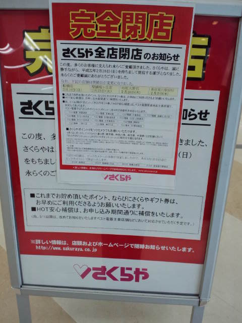実はテレビニュースで既に一部店舗が閉店しておるのが流れておった。これはさくらやの店舗のうちビックカメラが引き取ったものが数店舗あり、それらはいち早く閉店すると共に3月を待たずにビックカメラになったのである。