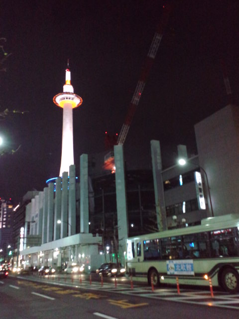 まず京都駅、東本願寺方面から見た夜の京都タワー、そして一人部屋には不釣り合いに多い布団セット、でもって西成のなべや(すきやき鍋)である。