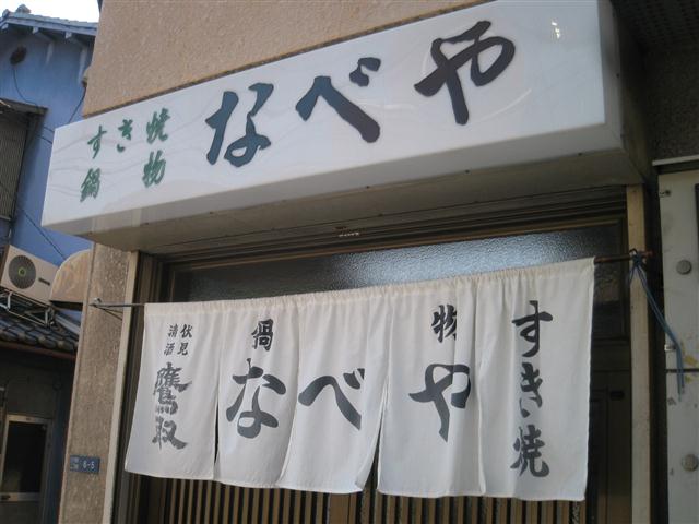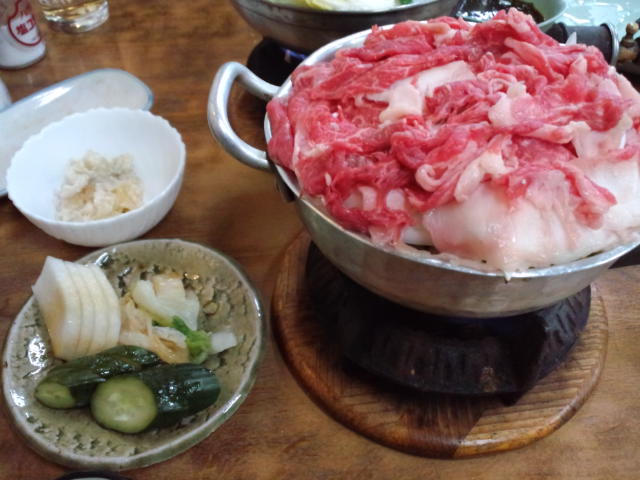 そんな事を思いつつ、噂の鍋屋、その名も「なべや」に着いた。ここはテーブルにガスコンロが人数分あり、そこで一人分からたら、牛豚すきやき、などをチョイスして食せるのである。