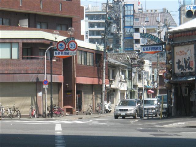 というのも、このあたりは飛田新地という、昔で言うところの遊郭なのである。実は天保山の後、西成に向かう途中に、これまた松原新地という場所を通った。写真はこれであるが、「~料理組合」という名前が踊っておるながら、実体は性的サービスを提供する風俗店である。