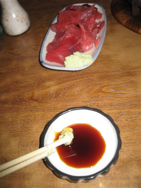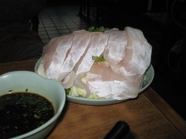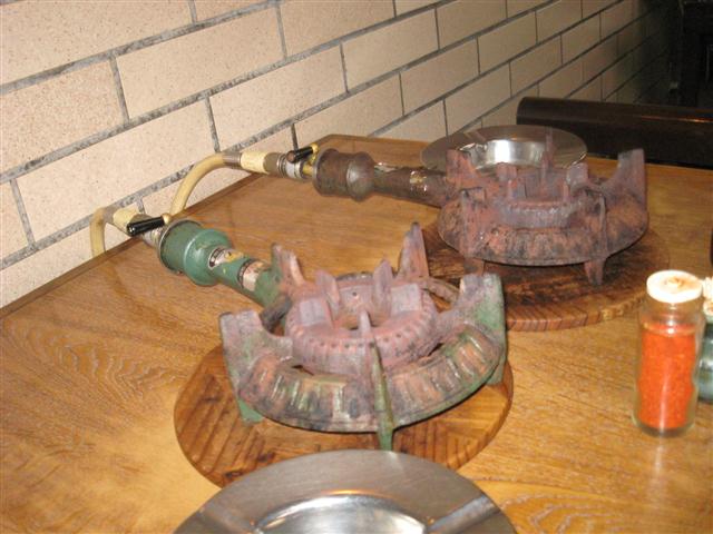 なべやの中、まぐろぶつとテーブルに並ぶ五徳、そいでもってたらちりである。