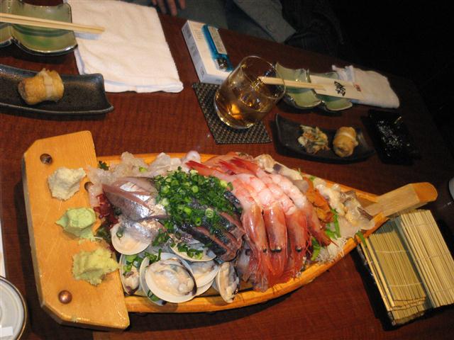 アイスバーンと化そうとしておるすすきのの街を進み、海鮮系居酒屋へ入る。まずは舟盛りじゃ。この、掘っても掘っても刺身の写真を見ればさすがは北海道と思う事であろう。