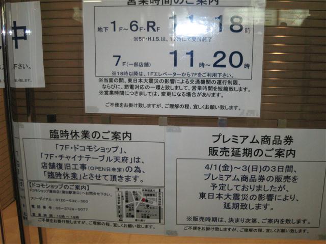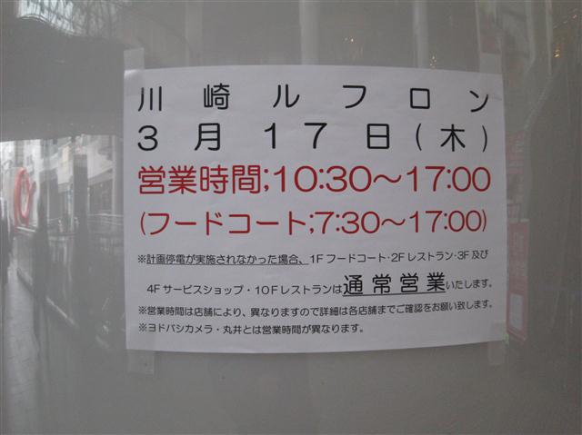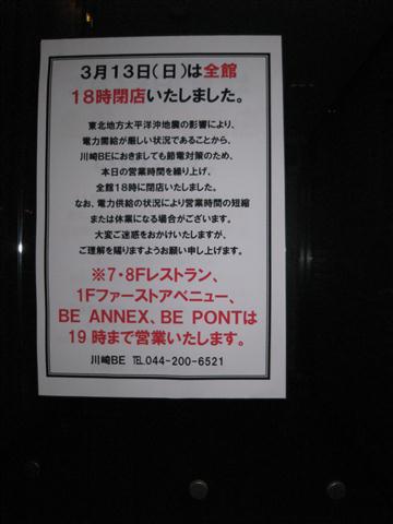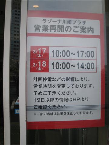震災以来、川崎の109シネマが閉まったままである。安全確認を行っておるとの事ではあるけれども、何をそこまで調べておるのか。同じ川崎のチネチッタも計画停電の影響を受けて昼過ぎまでしかやっておらんし、映画鑑賞予定が崩れまくっておる。まだナルニアも観れておらん上に、今週は仮面ライダーも始まるではないか。