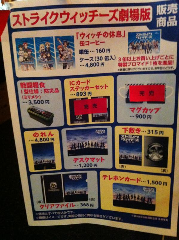 我らがストライクウイッチーズ劇場版の舞台挨拶で、東京近郊では最後に残っておったTOHOシネマズ川崎の発売もされた。まだ少々席に余裕はあるので、早めに買うがよい。