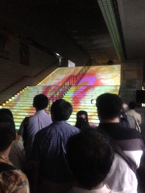 会場を出ようとすると、入り口の大階段でプロジェクションマッピングをやっておった。