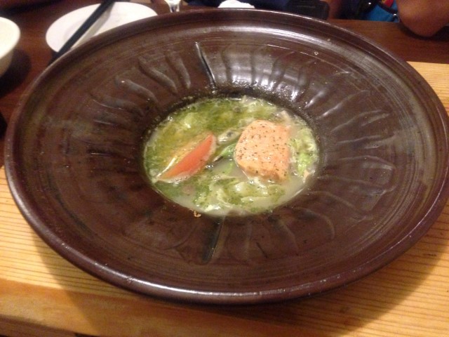 この店はサーモンの燻製がお勧めらしかったが、どれもうまかった。例えばこれなど、サーモンを食べた後にご飯を入れておじやっぽくするのである。