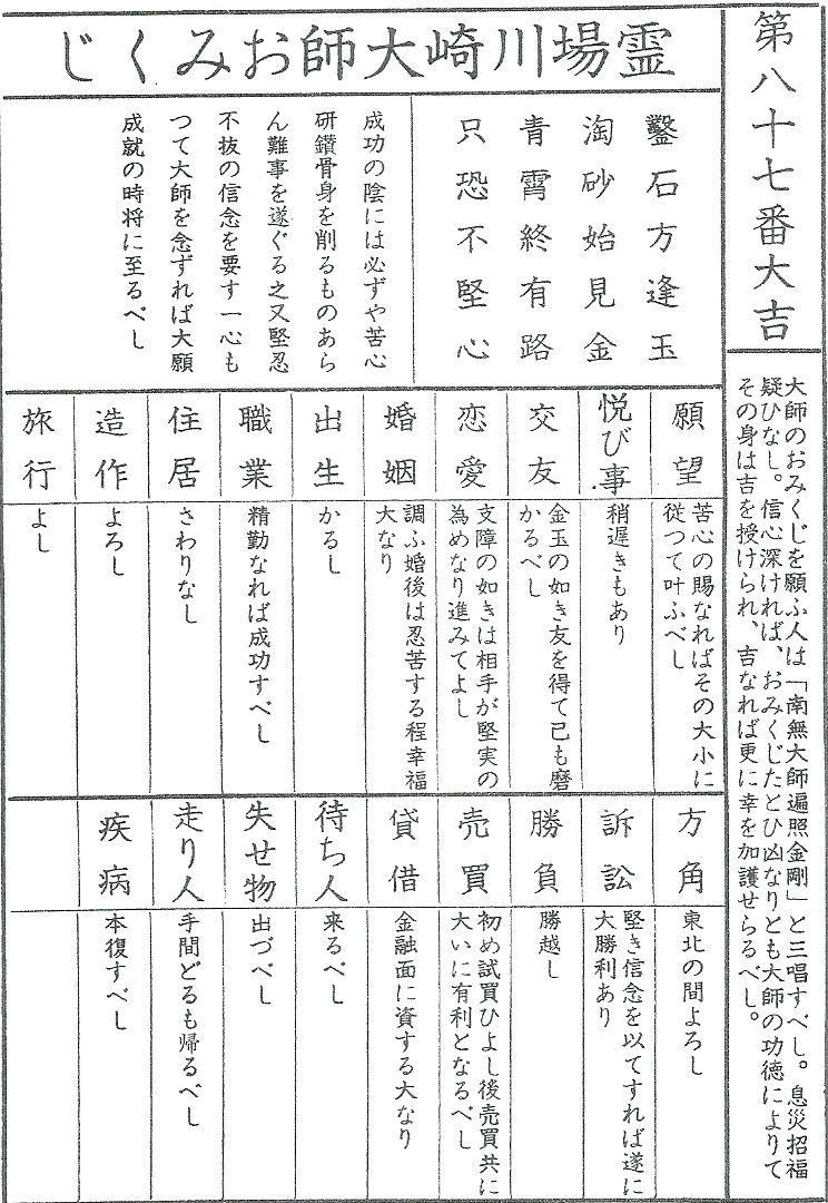 この通り、大吉だった。最近どうした川崎大師。過去にはずっと凶を引かせ続け、一年を暗く彩っておったではないか。もう川崎大師も年を取り腰が引けてきたのだろうか。