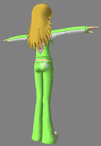| 疑惑晴れる。 テクスチャーなしの状態で見たとき、あれ?もしかして… は い て な い ? と思ったら黄緑のスパッツをはいてますたw