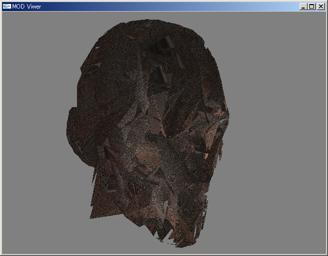 よく見てみると別モデルでそれらしきものを発見。 表示してみるとポリゴンがぐっしゃり。耳あたりはなんとなく表示されてる。 データ形式は人やVSなどとは違うようだ。 もしかしたら頂点データは一般的な位置情報かもしれない。 明日は、そのあたりを調べてみよう。